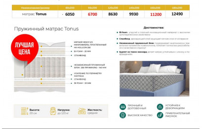 Кровать Карина из натурального дерева и матрас Тонус