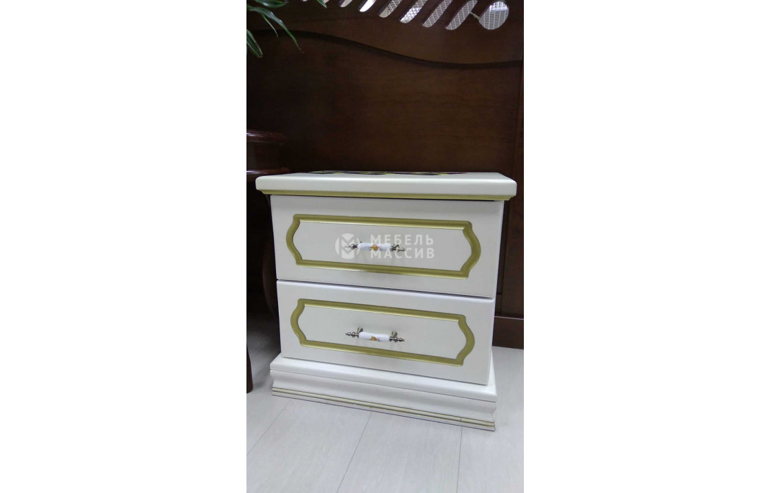Тумба Лира - 500x500x350 (сосна, цвет: Эмаль белая с золотой патиной)