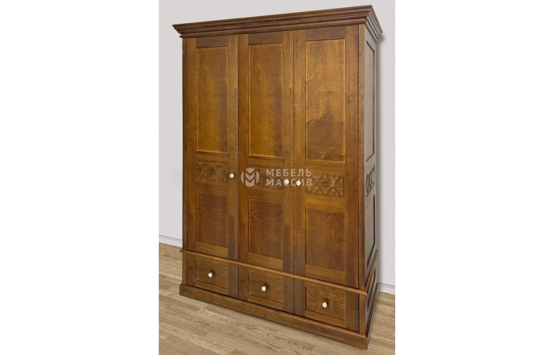 Трехстворчатый шкаф Дубрава – это классический образец мебели, который придется по вкусу всем, кто ценит изысканность и элегантность в интерьере. Его внешний вид поражает своей роскошью, благодаря использованию массива натурального дерева в качестве главного материала и широкой цветовой палитре. Лаковое покрытие придает еще больше изыска и акцентирует внимание на прекрасной древесной текстуре. Одной из особенностей модели является сплошное основание, обеспечивающее устойчивость и надежность. Этот шкаф отличается своей вместительностью и долгим сроком службы, что делает его отличным выбором для любого дома. Доставка по Рубцовску и Алтайскому краю .| Размер | Цена | |